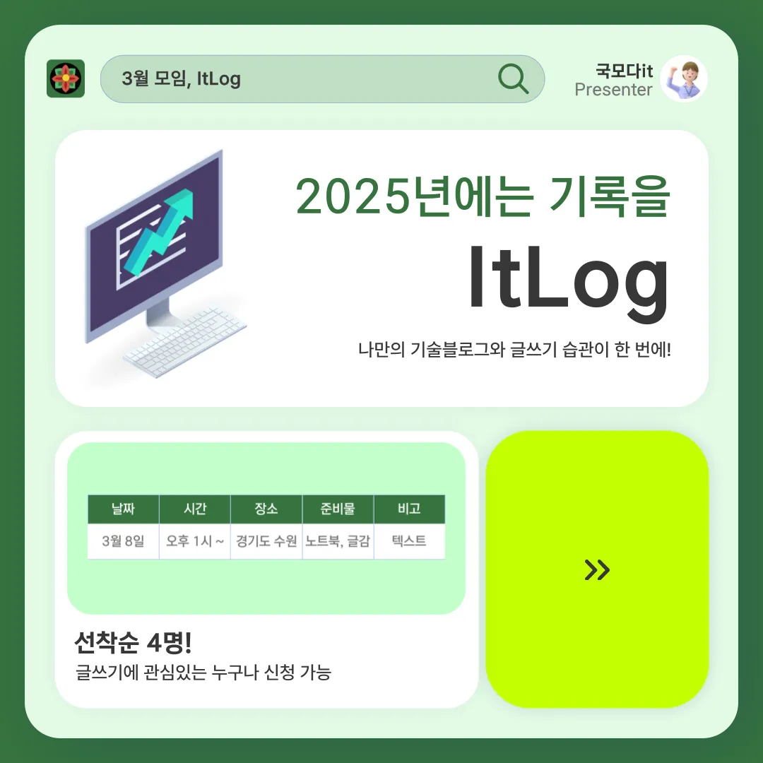 2์ 21์ผ ํ ์์ผ ์คํ 2์ ๋ฐ ~ 5์ (2์ฐจ๋ 5์ ์ดํ) ๐ ์ฅ์: ๊ฐ๋จ์ญ ๊ทผ์ฒ ์นดํ ๐ฏ ์ฃผ์ : ์์ฆ IT ์คํฌ ์ทจ์